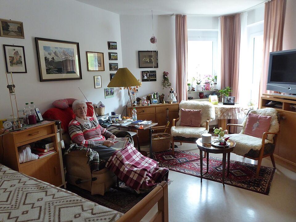 Unsere Einzelzimmer bieten Ihnen einen idealen Rückzugsraum, wenn Sie einmal einfach Zeit für sich brauchen, in Ruhe ein Buch lesen oder Fernsehen schauen wollen oder mit Ihren Angehörigen unter sich bleiben möchten. Und sollten Sie sich doch einmal einsam fühlen, sind die nächsten Menschen nur eine Tür entfernt, die Sie öffnen können und sogleich mitten in der Gemeinschaft sind. Die Zimmer sind zwar möbliert, Sie können aber gerne eigene Möbel, den Lieblingssessel, das Sideboard oder die Glasvitrine für Andenken aller Art mitbringen. Auch mit Bildern an der Wand oder Stehvasen mit Blumenschmuck können Sie sich eine heimelige Atmosphäre schaffen. Mit ca. 22 Quadratmetern sind die Zimmer sicherlich nicht allzu groß, aber für das eine oder andere gute Stück von Zuhause findet sich noch Platz. Zudem haben Sie in jedem Zimmer ein eigenes behindertengerechtes Bad mit WC und teilweise sogar noch eine kleine Küchenzeile. Leider haben wir nur 36 Einzelzimmer im Haus, so dass Sie eventuell zu Anfang des Heimaufenthaltes mit einem Doppelzimmer vorlieb nehmen müssen. Aber keine Sorge: ein zugesagtes Einzelzimmer erhalten Sie auch, sobald es frei wird.