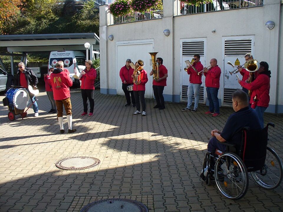 Sie vergessen uns nie! Die Kirchweihgesellschaft Ludwigsstadt kommt jedes Jahr am Kirchweih-Montag zum Ständerle bei uns im Altenheim Ludwigsstadt vorbei. Begleitet von der Ludschter Stadtkappelle tanzt und singt die Ludschter Jugend für unsere Bewohner in ausgelassener Fröhlichkeit. Auch den Schluck aus dem Bierkrug durften unsere Bewohner genießen. Zudem spielte das Wetter mit, und so war der Besuch der Kirchweihgesellschaft, kurz vor dem Mittagessen, eine willkommene Überraschung!