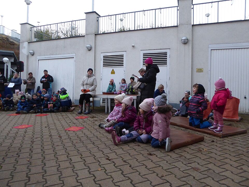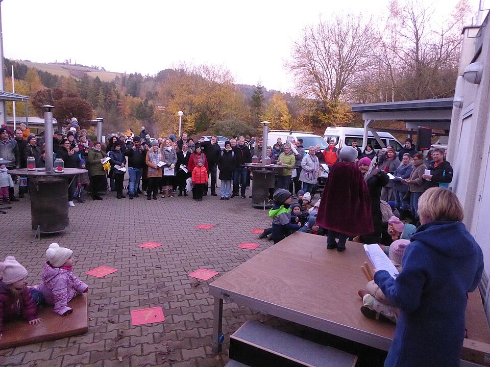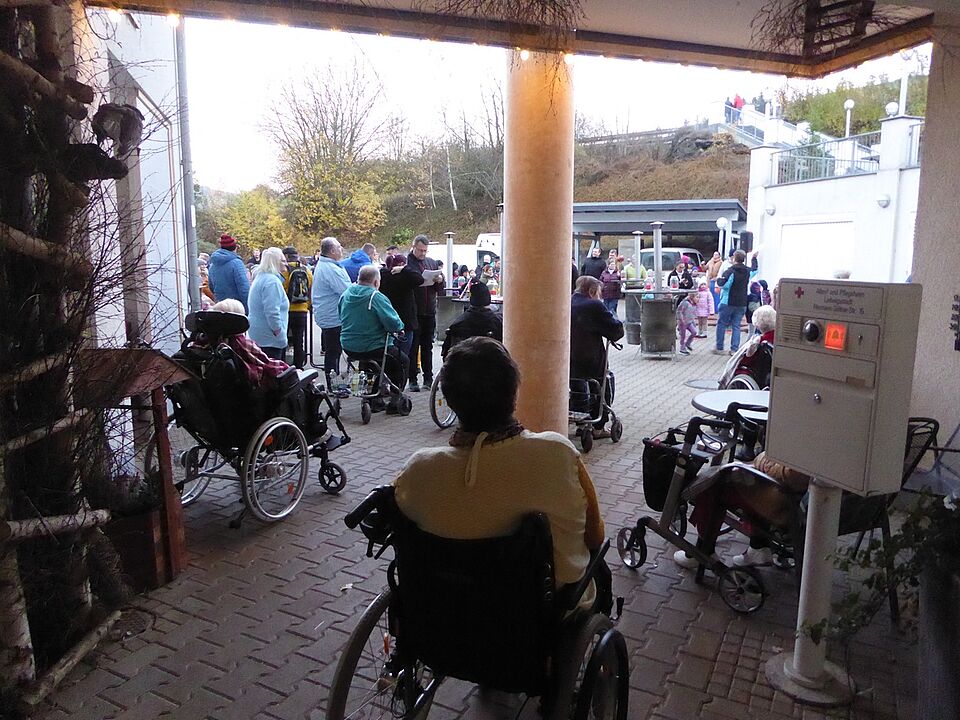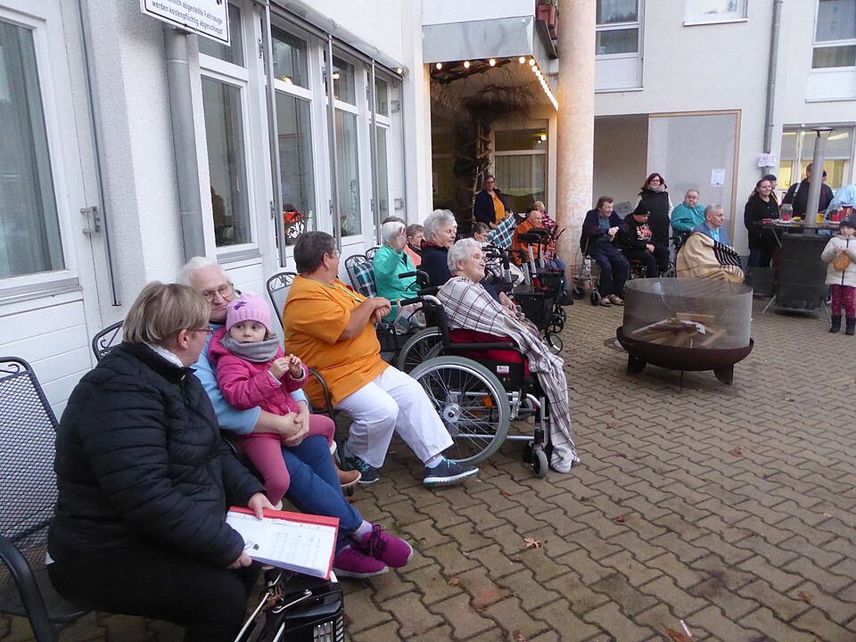 Zum Martinstag 2025 besuchte uns der Kindergarten Ludwigsstadt, um mit Martinsspiel, Martinsliedern und Laternenumzug unsere Bewohnern zu erfreuen. Nachdem die Kinder mit Eltern, Großeltern und Geschwistern eingetroffen waren, hielt Pfarrerin Kim Kießling eine kurze Andacht zum heiligen Martin und leitete das Martinsspiel ein. Umrahmt von einem Martinslied mit Akkordeonbegleitung und einem Martinstanz, zeigten die KLinmder dann in ihrem Schaupiel, wie Martin sich von einem Soldaten zum heiligen Bischof Martin wandelte. Der mit einem Bettler geteilte Mantel ist das altbekannte Symbol für das Zusammengehörigkeitsgefühl mit allen Menschen, auch mit den ärmsten unter ihnen. Im Anschluss zogen die Kinder mit ihren Laternen und mit allen Angehörigen durch Ottendorf, um auch die Bevölkerung des Ortes zu erfreuen. Nachdem sie dann wieder zurück beim Altenheim ankamen, gingen die “Großen” noch einmal auf Station, so dass auch die bettlägerigen Bewohner am Martinstag teilhaben konnten. Der Abend klang dann vor dem Haupteingang des Hauses aus. Es gab Würstchen, Martinsgänse, Glühwein und Kinderpunsch. Aufgestellte Feuertonnen schafften dabei Wärme und Gemütlichkeit. Ein richtig schöner Martinstag!