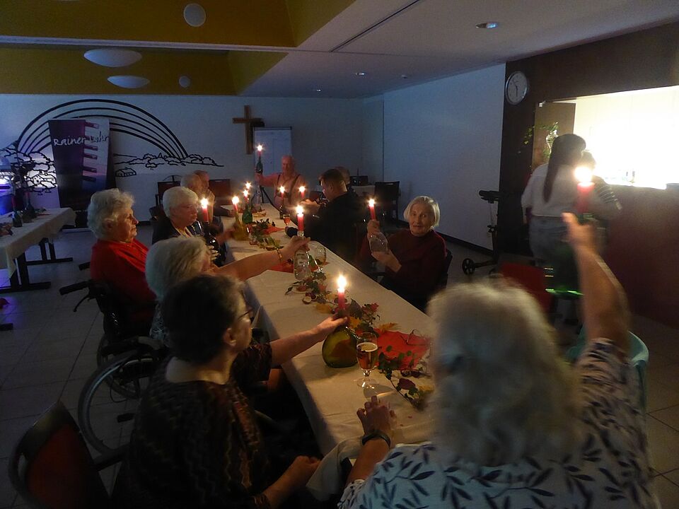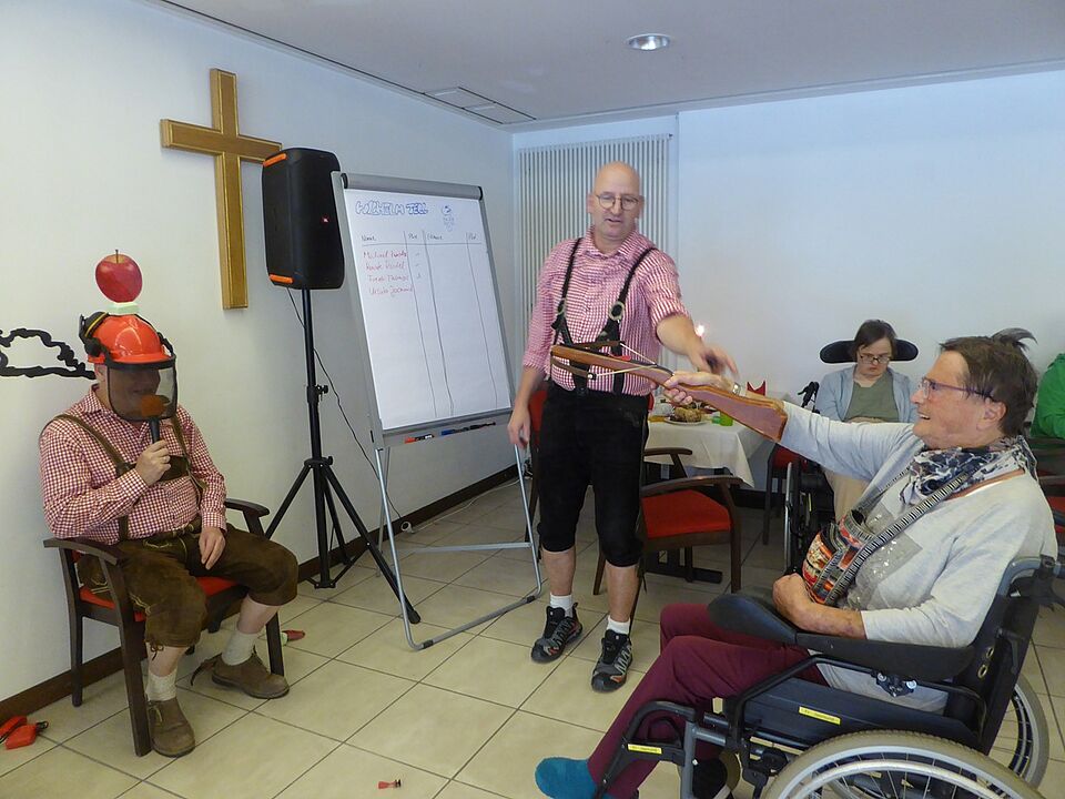 Das Weinfest im BRK Seniorenheim Ludwigsstadt gehört seit jeher zum Standard im Jahreskreis. Wie immer gab es edle Tropfen, Weißwein, Rotwein, Roséwein und den leckeren süßen Federweißen, der wie Limonade heruntergeht. Gefährlich!! Gefährlich!!! Für die musikalische Stimmung sorgte wie immer unser Rainer Lohr, der mit Wein- und Schunkelliedern zum Mitsingen, Klatschen und Tanzen anregte. Wie immer gab es auch ein lustiges Spielchen, bei dem auch wieder Preise zu gewinnen waren. Dabei ging es darum, in Wilhelm-Tell-Manier mit der Armbrust einen Apfel vom Kopf eines mutigen Opfertyps zu schießen. Für alle war dies eine riesen Gaudi. Auch für das leibliche Wohl war gesorgt, und was passt zum Wein besser als ein Zwiebelkuchen. Der harte Kern blieb natürlich noch lange sitzen, und wieder einmal hatten wir einen richtigen schönen Abend!