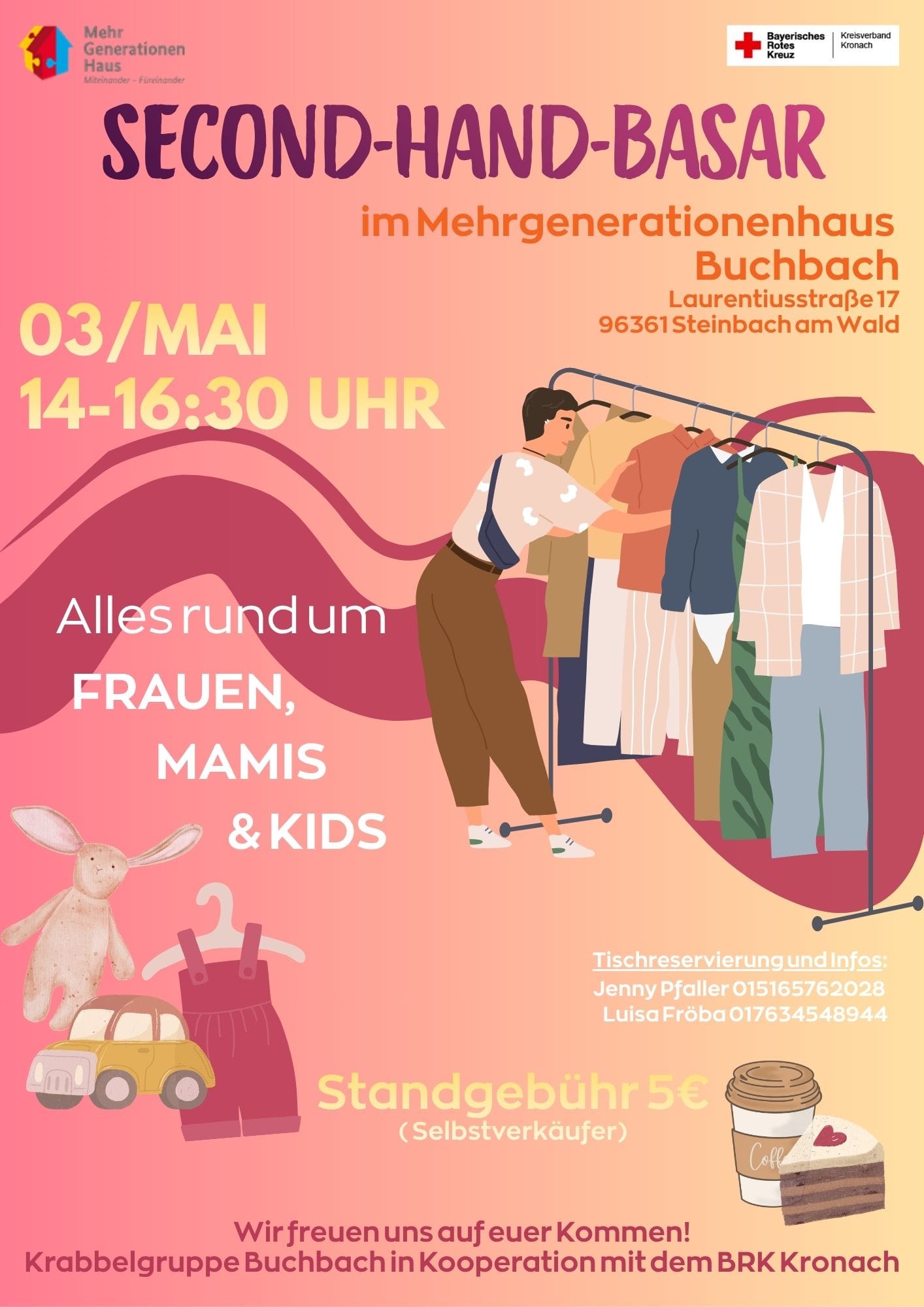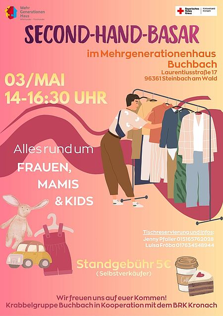 Am 03.05.2026 bieten findet im MGH Buchbach ein Second-Hand-Basar statt.